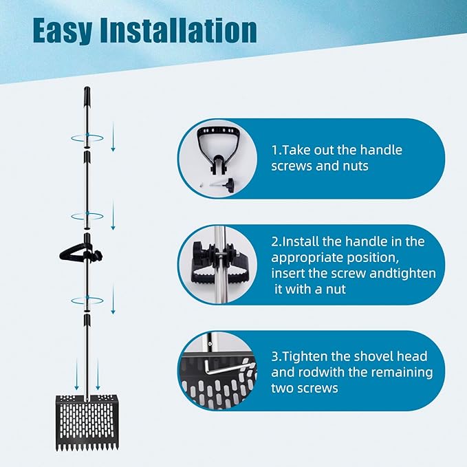- 【Chicken Coop Cleaning Tools】Installing our chicken coop cleaning tools is a breeze. The head and handle are connected by secure screws that ensure a stable and long-lasting connection.The simple swivel thread connection makes it easy to adjust and use. Meanwhile, the non-stick design of the shovel head makes cleaning a snap