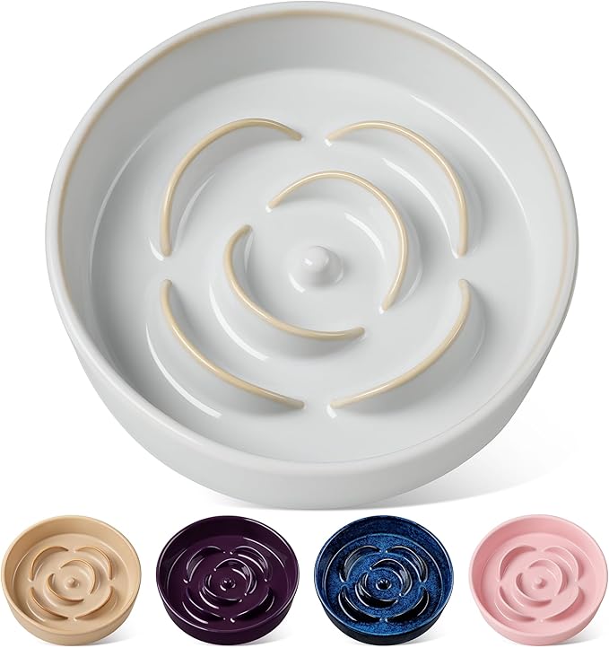 - Which Breeds are Suitable: This ceramic slow feeder dog bowl is perfect for Large pets like cats and Large dogs, including Chihuahuas, Pomeranians, Maltese, Teddy Bears, Shih Tzus, and Pugs. With a 9.75-inch diameter, it holds 3 cups of dry food or 52oz of water, featuring slow-feeding ridges to promote healthier eating habits. Made of durable, pet-safe ceramic, it’s ideal for portion control and preventing bloating in Large breeds.