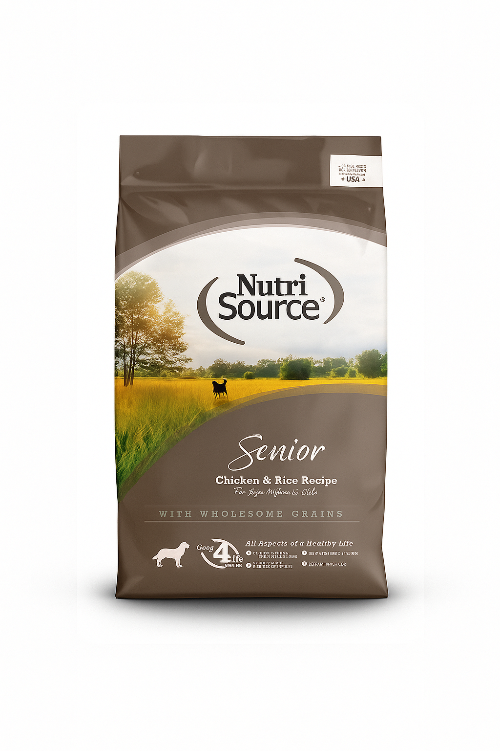 - As a member of our grain inclusive series, NutriSource Chicken and Rice Dry Dog Food is formulated to meet AAFCO guidelines for senior dogs