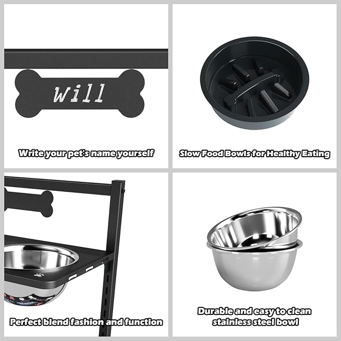 - SUITABLE FOR LARGE AND MEDIUM DOGS: The raised dog bowl feeder is perfect for large and medium dogs. It comes with a free white pen that you can use to write on the sign