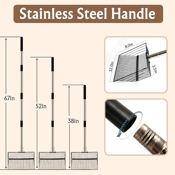 12inch Large Chicken Poop Scooper,With24 to 67" Stainless Steel Handle,Ideal for Chicken Coops, Pet Areas, and Farm Cleanup (12" Width)