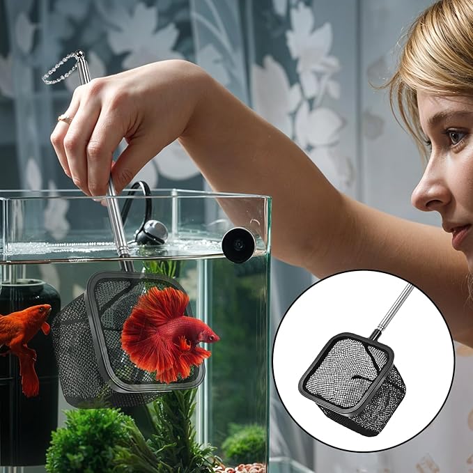 - Multi-Functional Use: This tiny fish tank net is perfect for safely catching and transferring small fish and shrimp. It’s also great for skimming debris, food residue, and leaves from aquariums or small ponds to maintain a clean environment