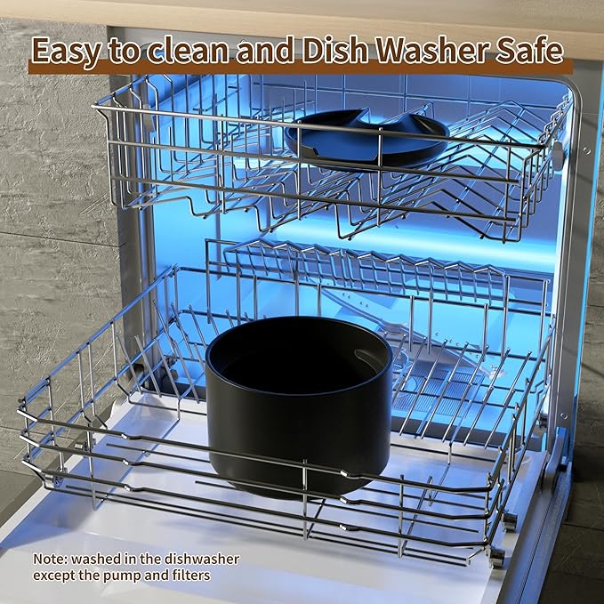 - Ceramic Cat Water Fountain: Automatic water dispenser made from porcelain fired at high-temperatures of 1240 degrees and glazes are food safe material. That is durable and scratch-resistant.The ceramic tray and tank can be used for dishwashers to give your furry friends a health drinking environment.Except for the filter tray which is made of ABS and is BPA free.
