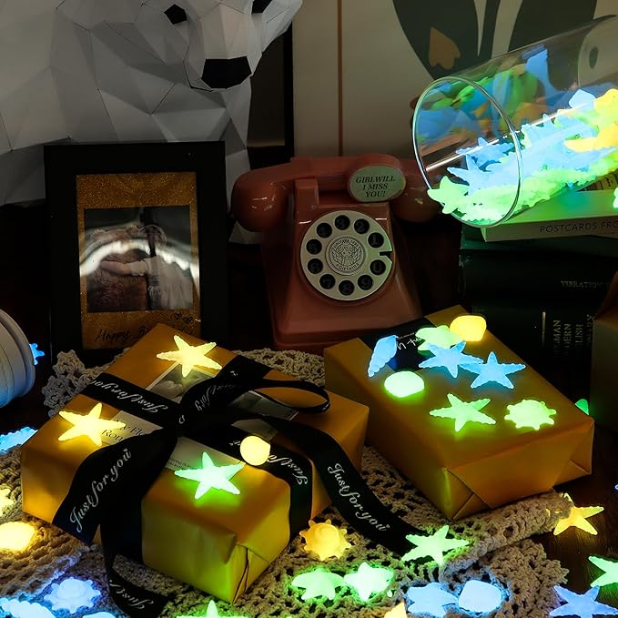 - Package Include: 100PCS ocean luminous stones, such as shells, conches, starfish, etc. Decorate them to your idea.