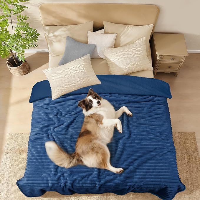 Luciphia Waterproof Dog Blanket for Large Dogs Ultra-Soft Calming Cut Pile Flannel Throw Durable & Warm Furniture Protection for Couch Bed Pet Blanket Machine Washable Deep Navy,L(65''x57'')