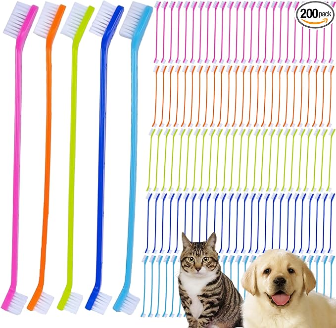 - 200PCS Pet Toothbrushes: 40 pieces per color 5 Distinct Colors.Easily assign a color to each pet or track usage over time. Set includes blue, green, pink, yellow, and orange brushes.A full supply for daily use, training, or sharing with fellow pet parents!It’s an exceptional value for daily brushing routines.