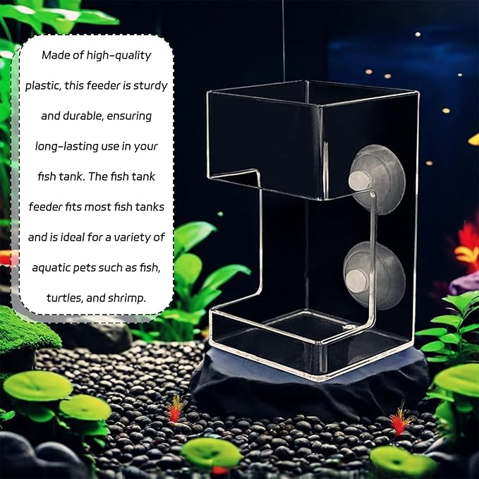 - [Easy Installation] - This fish food feeder features a suction cup that securely attaches to the aquarium wall, providing a pleasant user experience. Our feeder securely attaches to the side of the aquarium and won't move easily. Its sunken design ensures that fish food gathers.